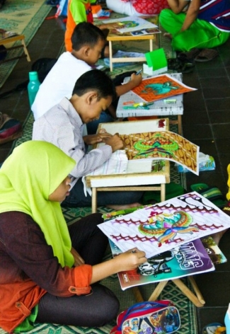 Sambut Hari Batik Siswa Mewarnai Batik Kawung