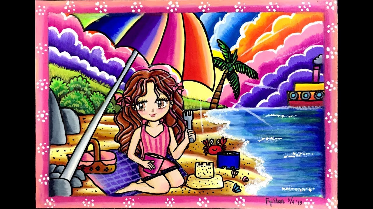 Cara Menggambar Dan Mewarnai Bermain Di Pantai Youtube