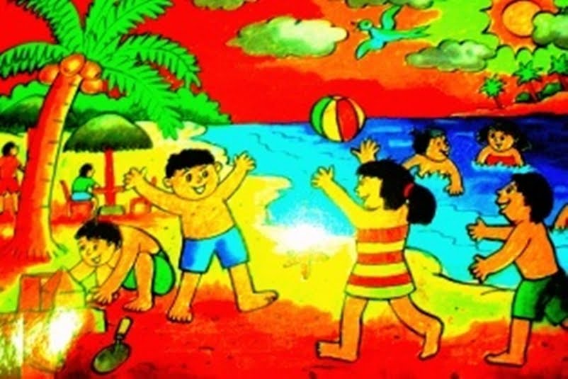 Gambar Mewarnai Anak Bermain Di Pantai Warna Warni Gambar
