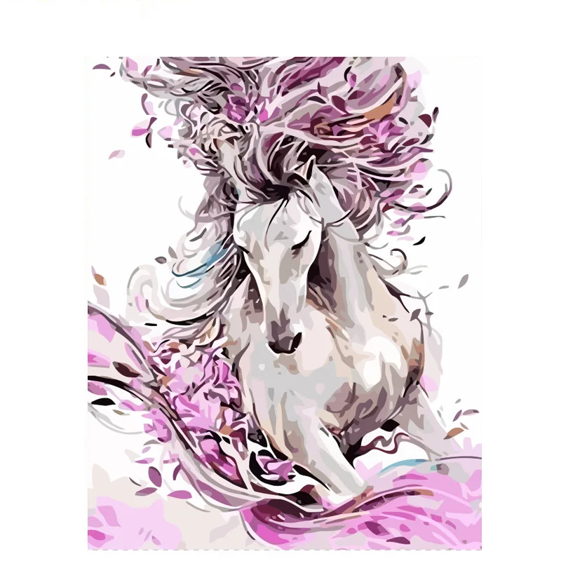 Diy Kit Dengan Angka Lukisan Hewan Kuda Akrilik Mewarnai Pada