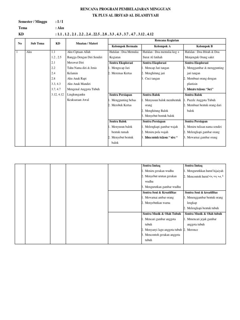 Doc Perencanaan Mingguan Rkm Ririf Prima Academia Edu