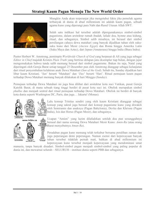 Strategi Kaum Pagan Menuju The New World Order