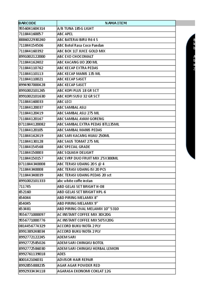 Data Barcode Produk 25ribu Item Sunscreen Food Ingredients