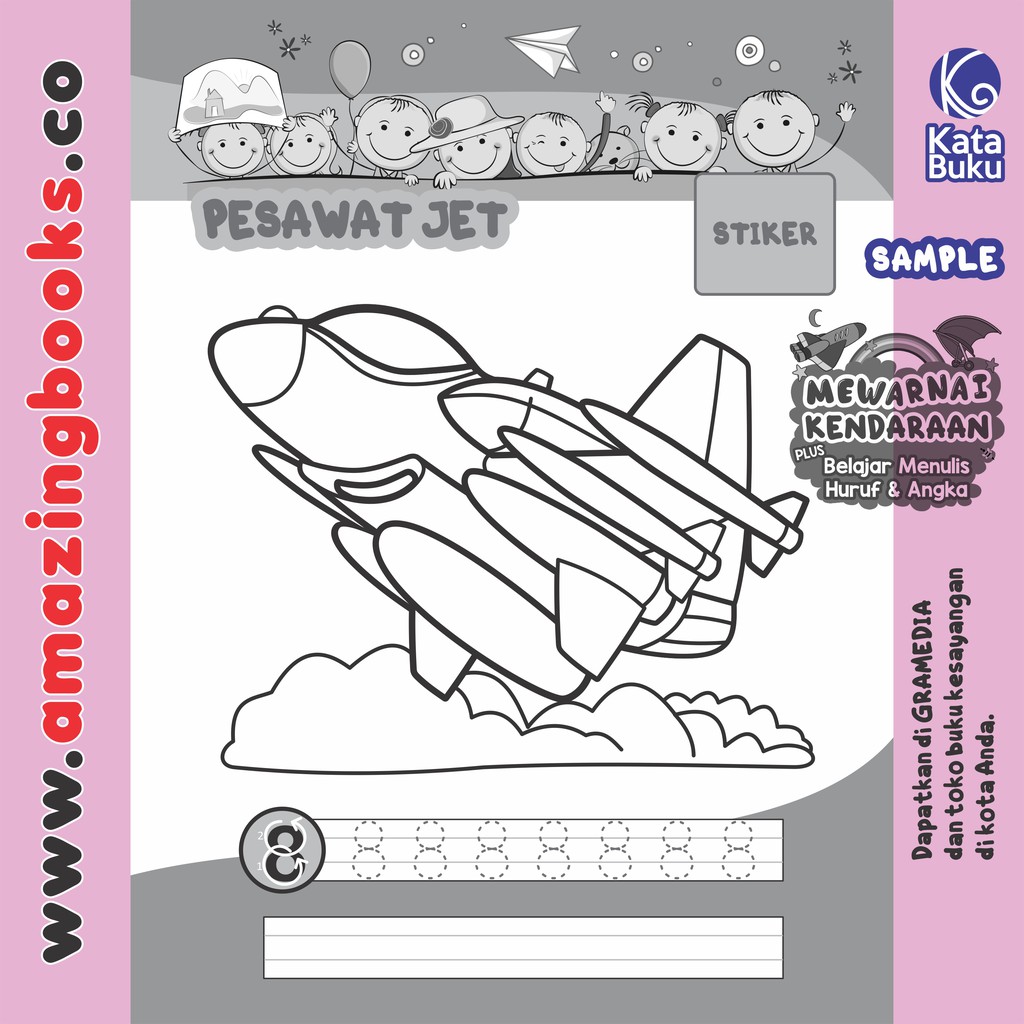 Buku Seri Paud Mewarnai Pesawat Tempur Dilengkapi Belajar Menulis